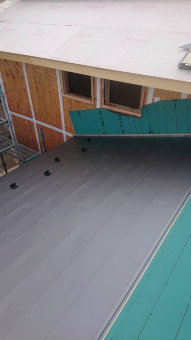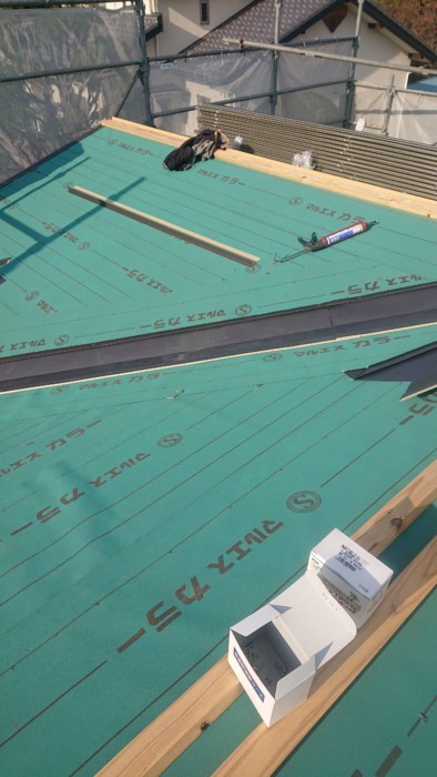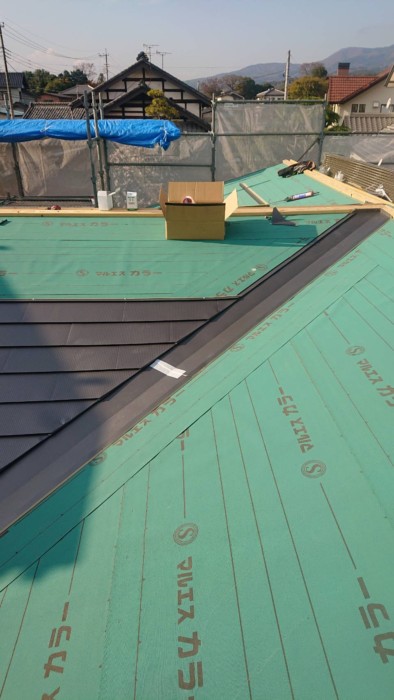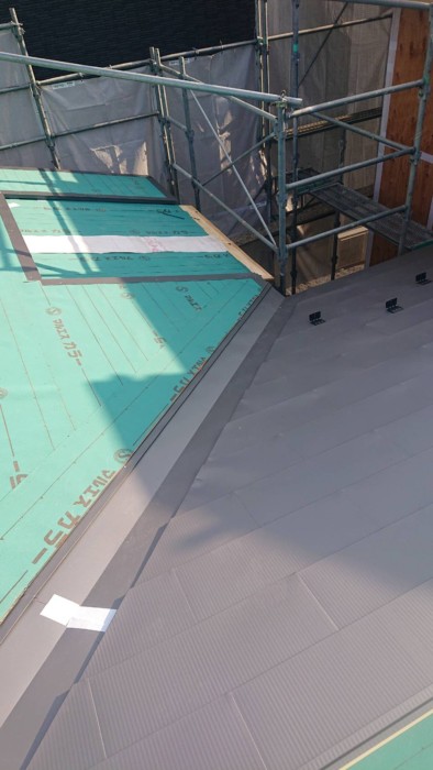 A様邸の新築工事で、谷取り付け・屋根工事を行なっています。
