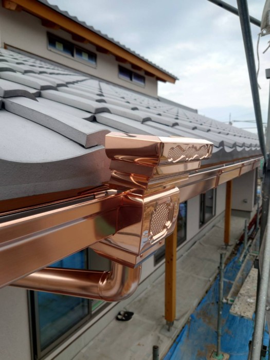 銅製の雨樋の取り付け
