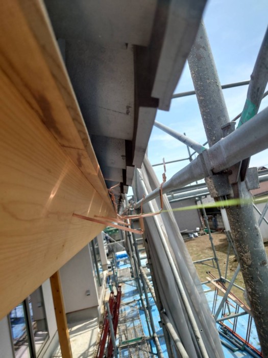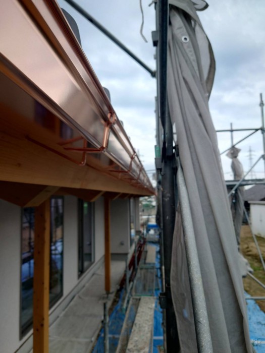 「銅製の雨樋の取り付け」と「銅板の庇(霧除け)の設置」を行ないました。